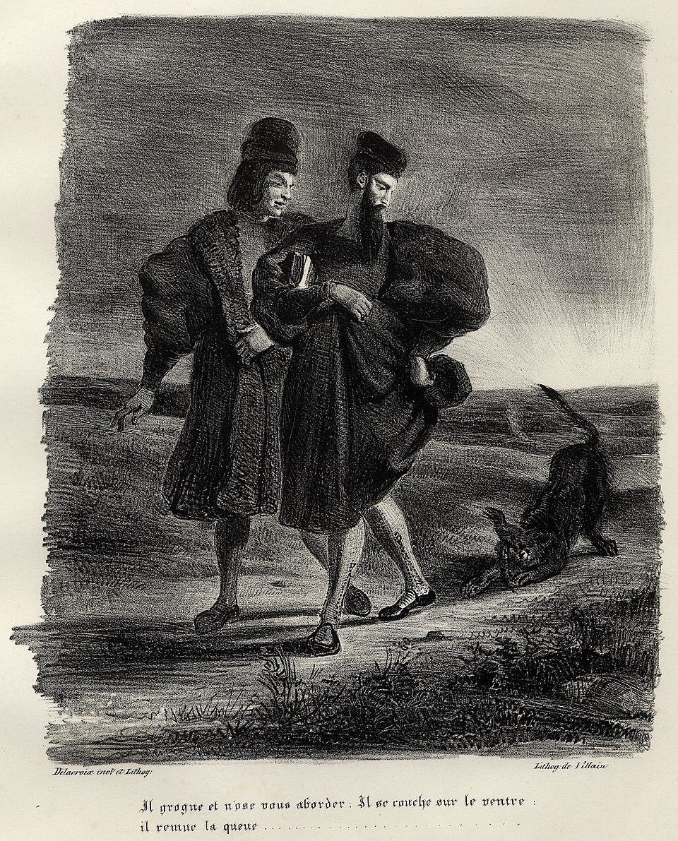这时路旁忽然出现了一只神秘的黑狗,执着的跟着浮士德和瓦格纳回家,怎么赶都赶不走。